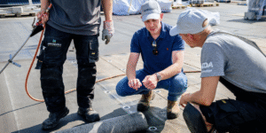 Directeur/eigenaar van Kwerreveld, Dave van Zantvoort: “Belangrijk om te benadrukken is dat de uitvoering praktisch verliep zoals men gewend is. Onze dakdekkers merkten nauwelijks verschil in de verwerking ten opzichte van een traditionele onderlaag.”